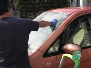 画像はガラスの下地処理で、油膜を取る研磨