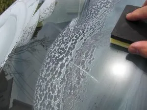 撥水剤を塗る前に一番大事な前処理をします。