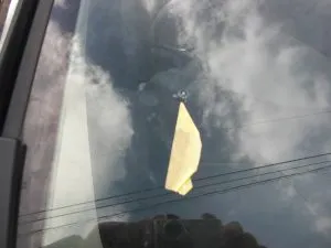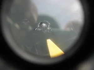端のヒビは気にならないから、放って置かれるケースが多いのですが、走行中は特に振動、風圧、ねじれ等で常にガラスにストレスが掛かり突然小さなヒビが伸張します。