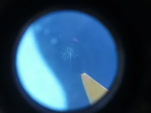 運転席側下端に1cm程のヒビです。